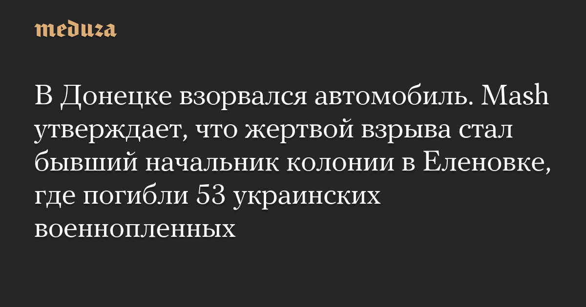 В Донецке взорвался автомобиль. Mash утверждает, что жертвой взрыва стал бывший начальник колонии в Еленовке, где погибли 53 украинских военнопленных