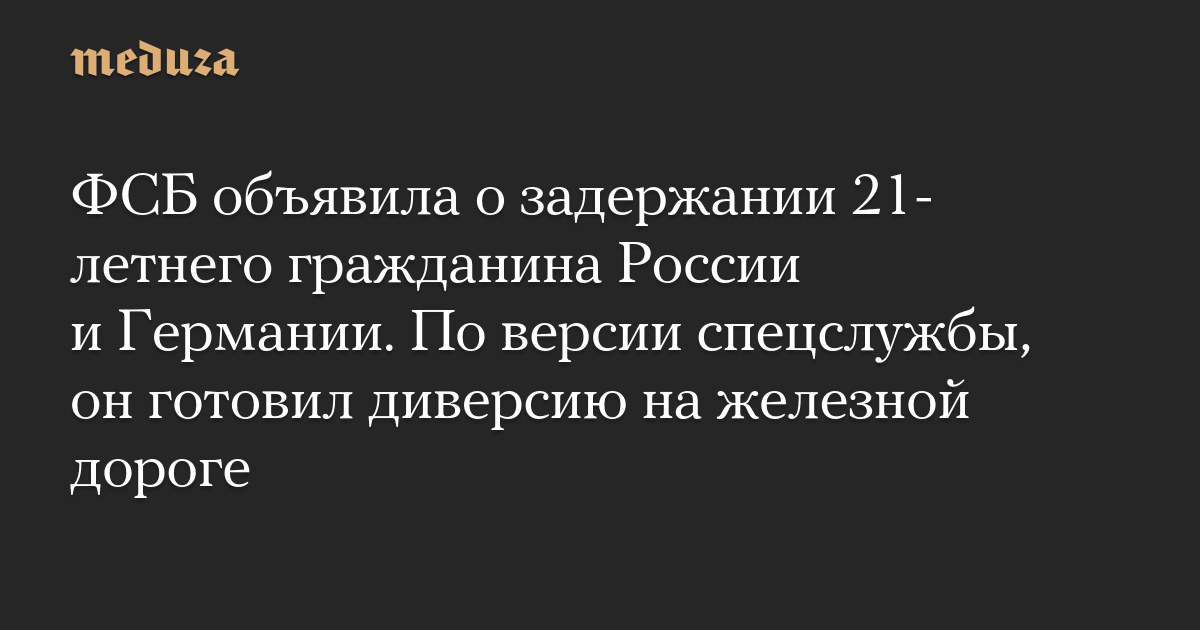 ФСБ объявила о задержании 21-летнего гражданина России и Германии. По версии спецслужбы, он готовил диверсию на железной дороге