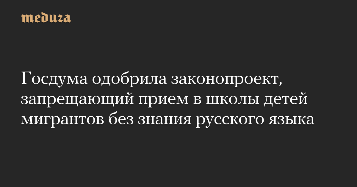 Госдума одобрила законопроект, запрещающий прием в школы детей мигрантов без знания русского языка