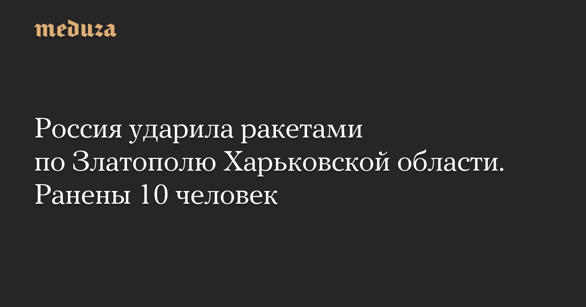 Вооруженные силы РФ нанесли ракетный удар по городу Златополь в Харьковской области, сообщил глава областной военной администрации Олег Синегубов.
