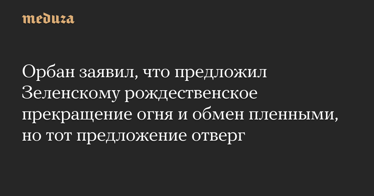 Премьер-министр Венгрии Виктор Орбан заявил, что предложил президенту Украины Владимиру Зеленскому рождественское прекращение огня, но тот ответил отказом.