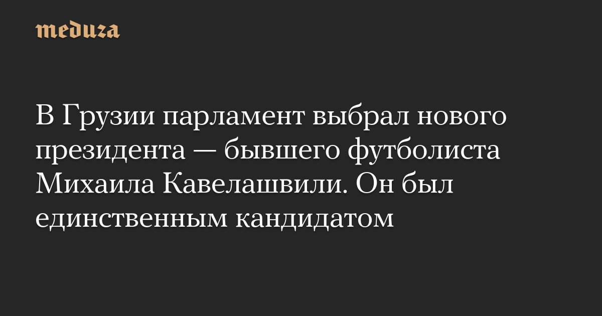 Коллегия выборщиков в Грузии избрала нового президента — им стал бывший футболист и депутат Михаил Кавелашвили, выдвинутый правящей партией «Грузинская мечта». Он был единственным кандидатом.