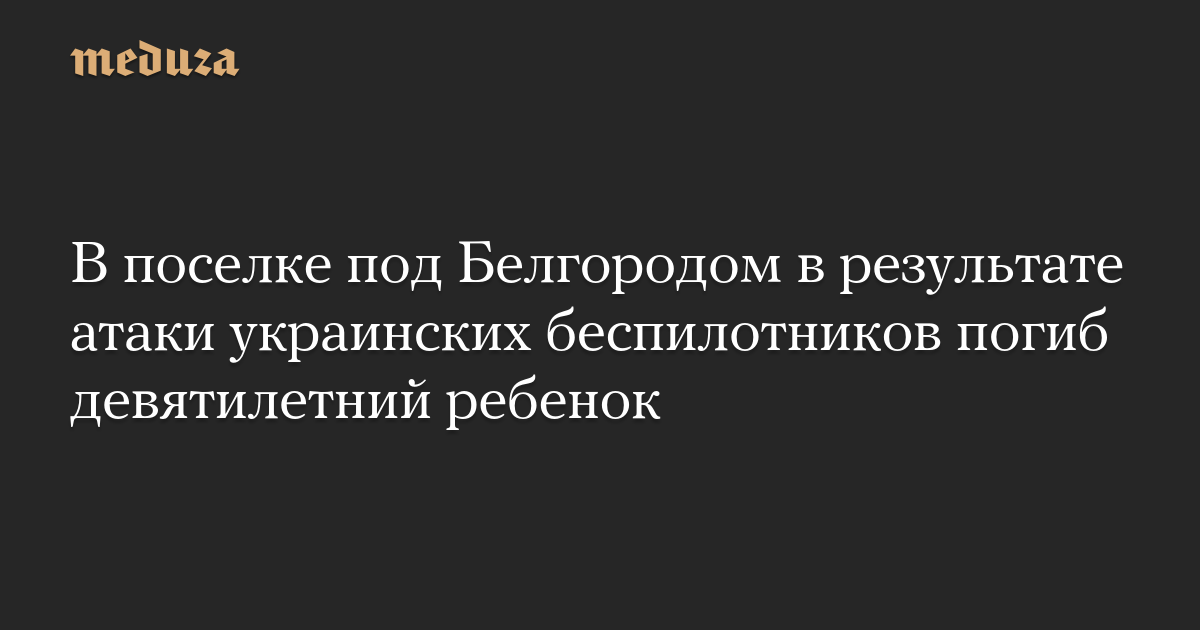 В поселке под Белгородом в результате атаки украинских беспилотников погиб девятилетний ребенок