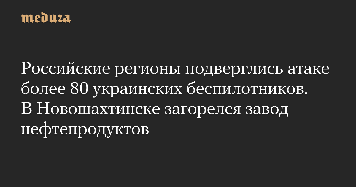 Российские регионы подверглись атаке более 80 украинских беспилотников. В Новошахтинске загорелся завод нефтепродуктов