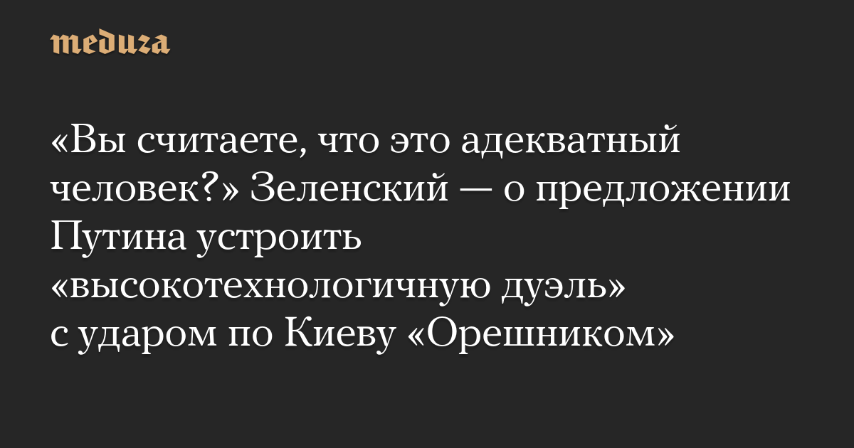 «Вы считаете, что это адекватный человек?» Зеленский — о предложении Путина устроить «высокотехнологичную дуэль» с ударом по Киеву «Орешником»