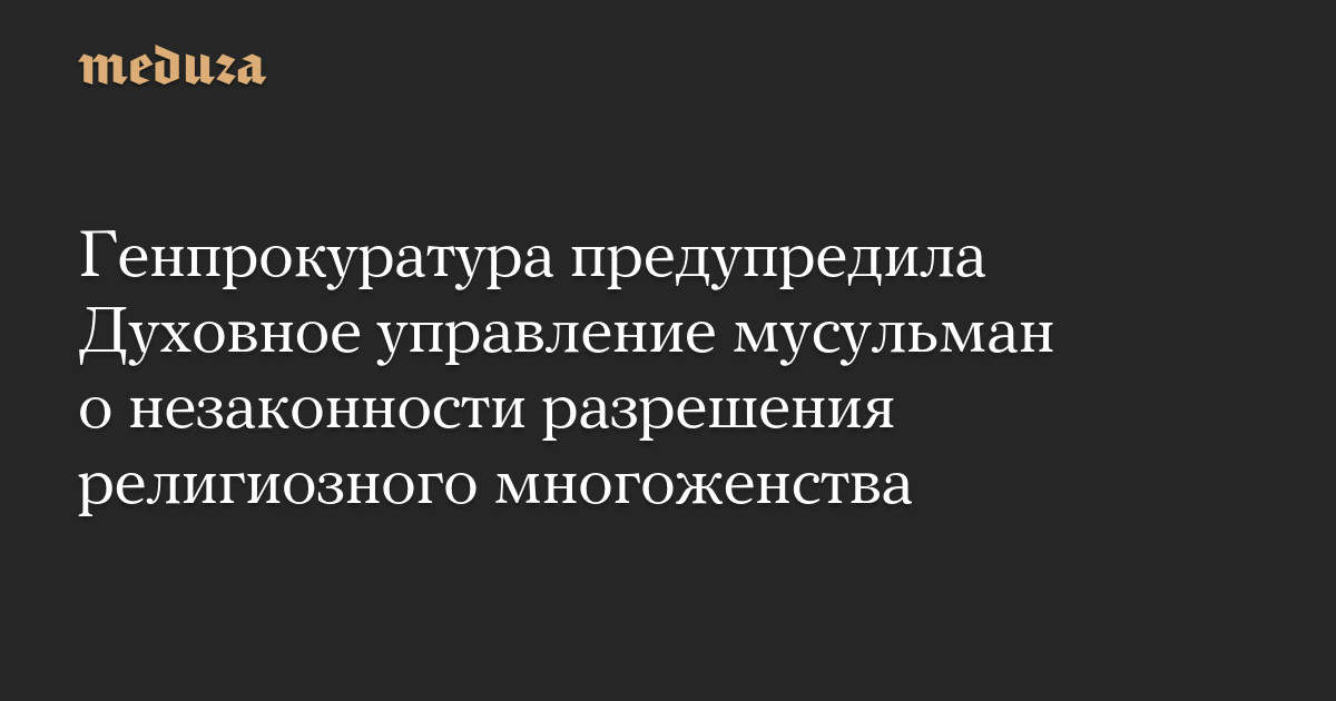 Генпрокуратура предупредила Духовное управление мусульман о незаконности разрешения религиозного многоженства
