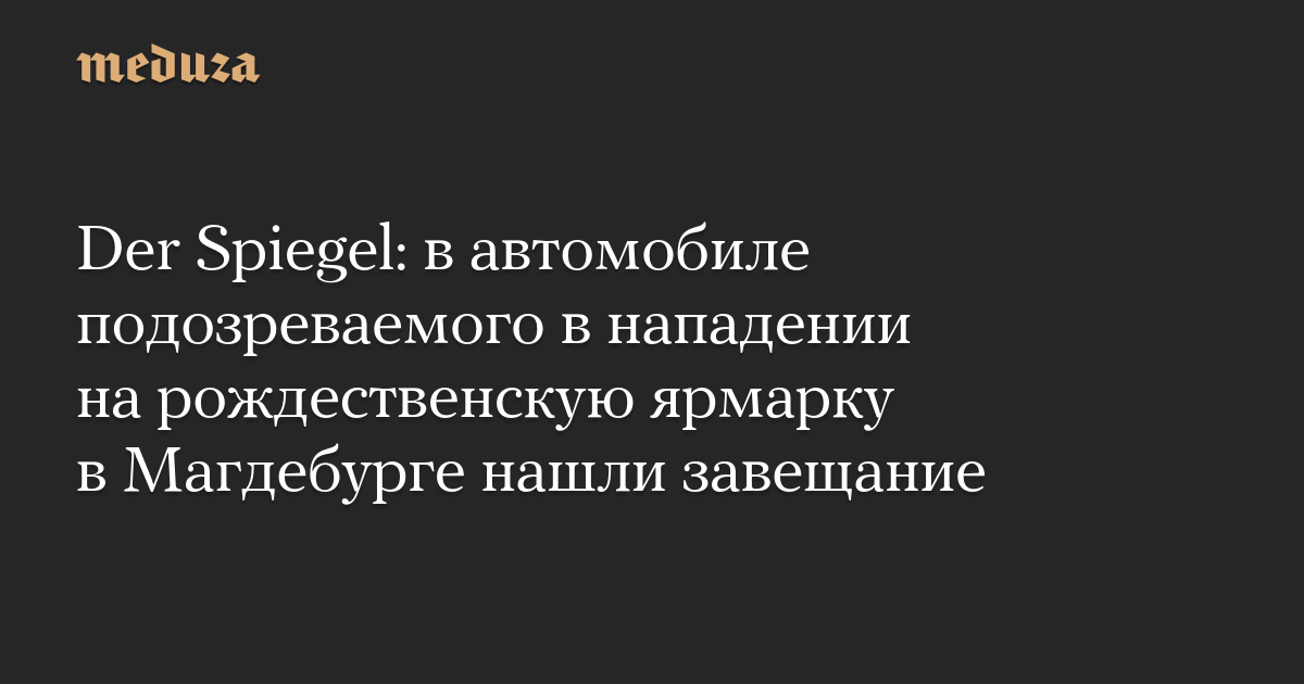 Немецкие следователи обнаружили завещание в автомобиле врача из Саудовской Аравии Талеба аль-Абдулмохсена, которого задержали после наезда на посетителей рождественской ярмарки в Магдебурге, сообщает Der Spiegel в публикации от 23 декабря.