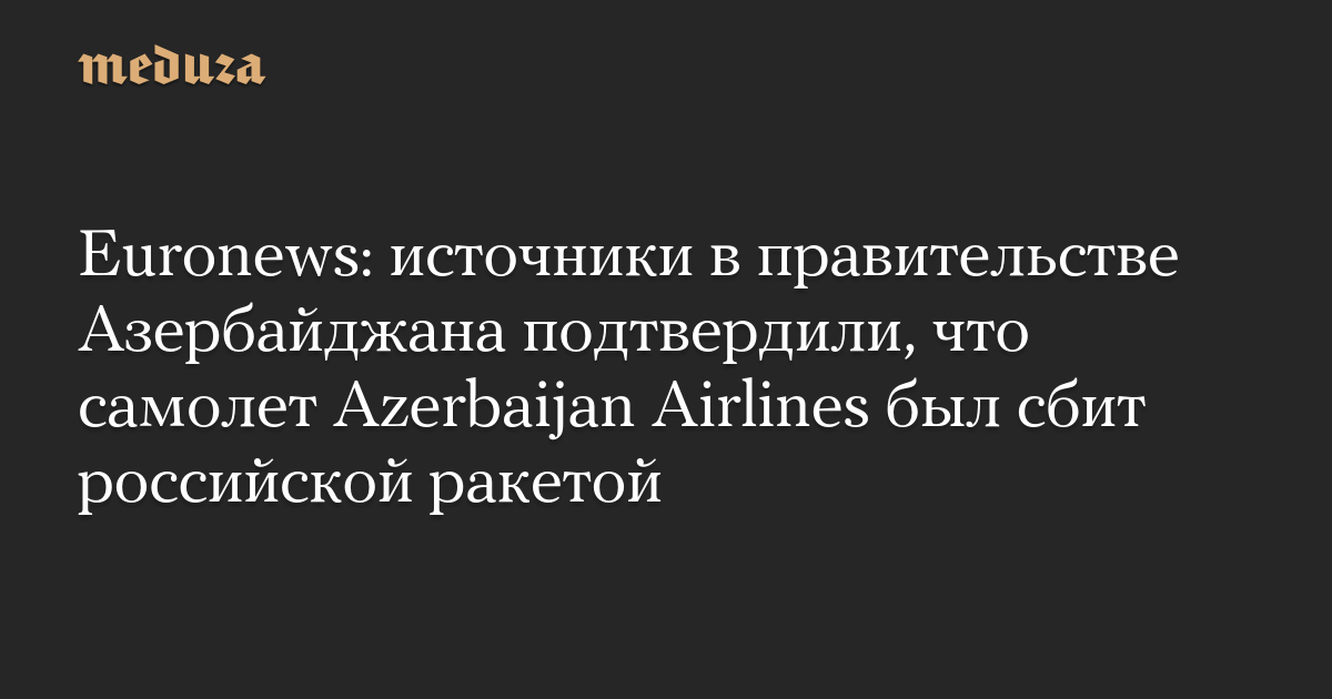 Euronews: источники в правительстве Азербайджана подтвердили, что самолет Azerbaijan Airlines был сбит российской ракетой