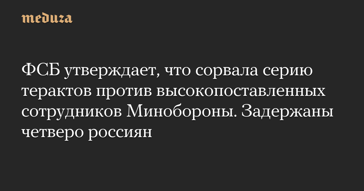 ФСБ утверждает, что сорвала серию терактов против высокопоставленных сотрудников Минобороны. Задержаны четверо россиян