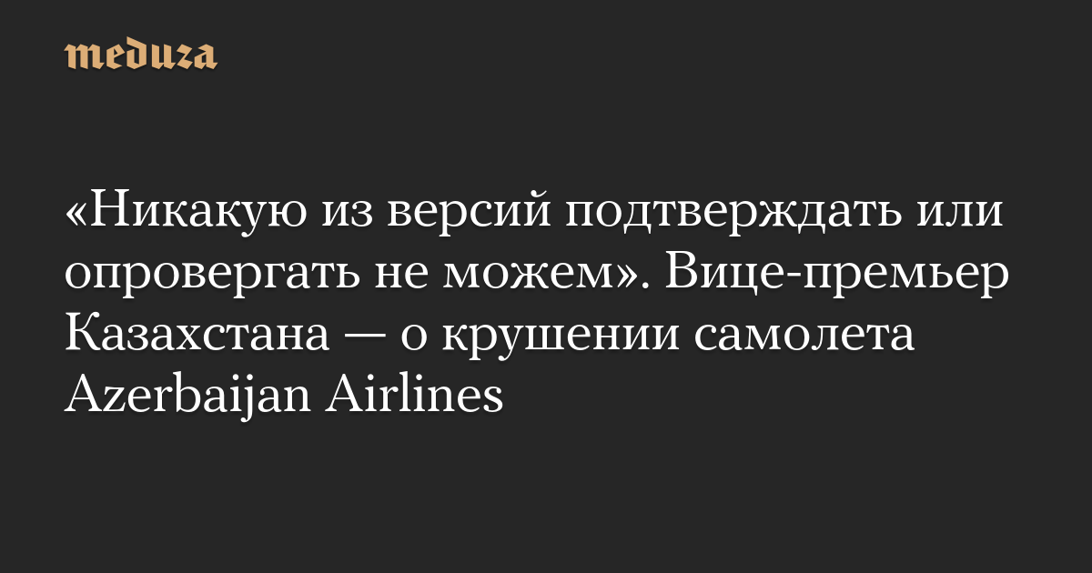 «Никакую из версий подтверждать или опровергать не можем». Вице-премьер Казахстана — о крушении самолета Azerbaijan Airlines