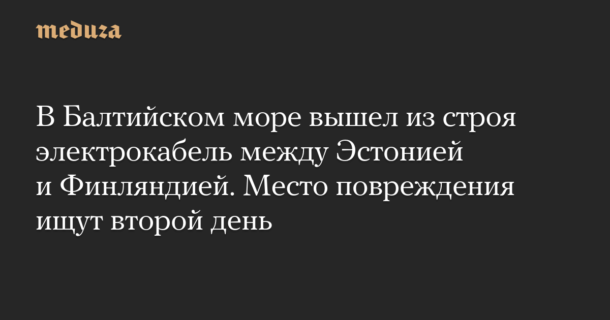 В Балтийском море вышел из строя электрокабель между Эстонией и Финляндией. Место повреждения ищут второй день