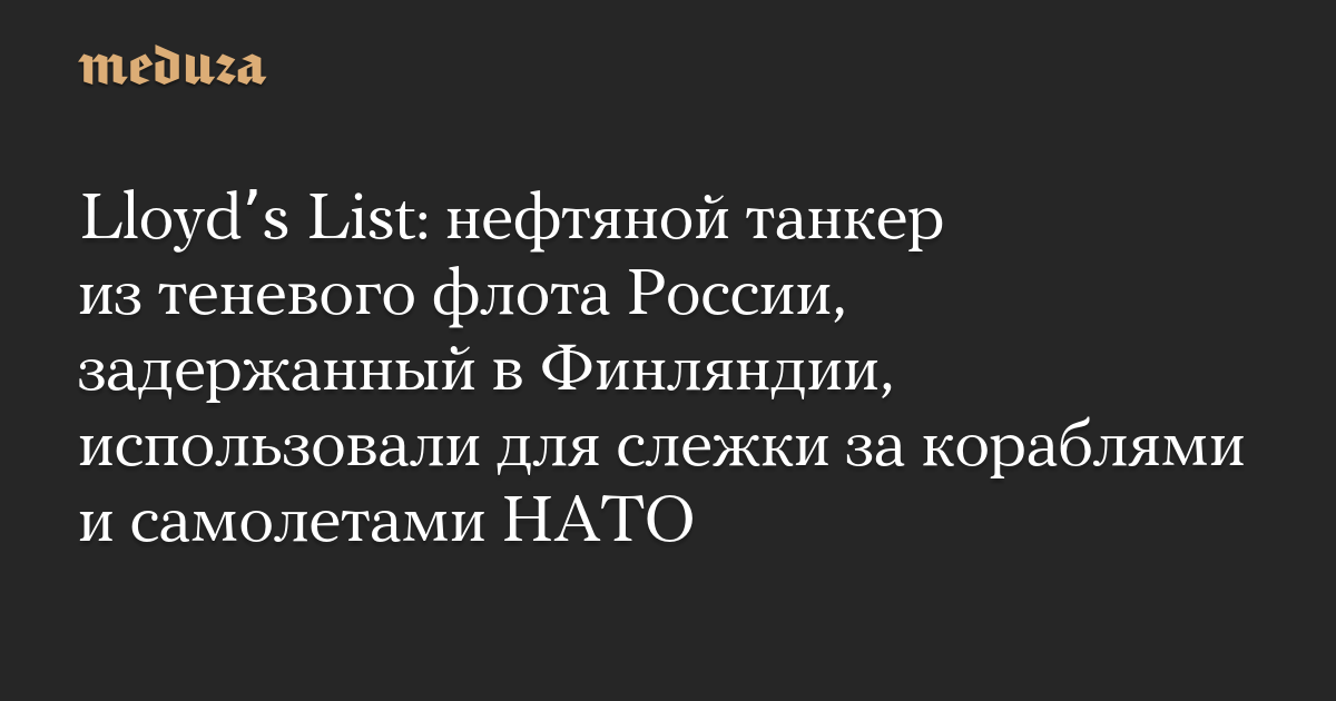 Lloydʼs List: нефтяной танкер из теневого флота России, задержанный в Финляндии, использовали для слежки за кораблями и самолетами НАТО
