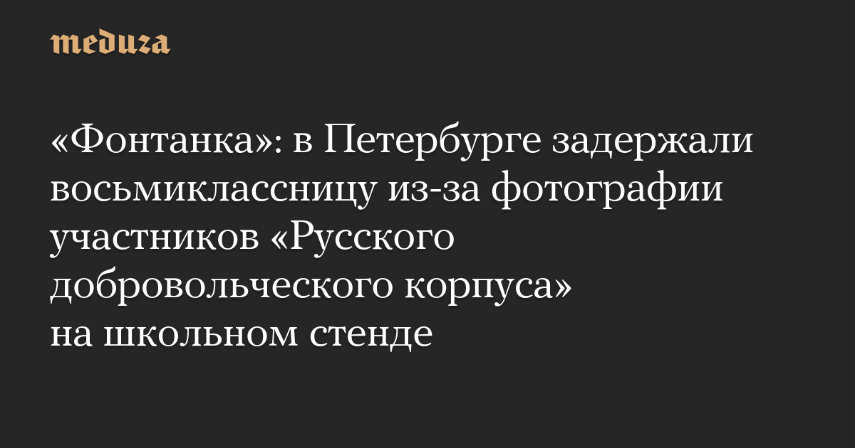 «Фонтанка»: в Петербурге задержали восьмиклассницу из-за фотографии участников «Русского добровольческого корпуса» на школьном стенде