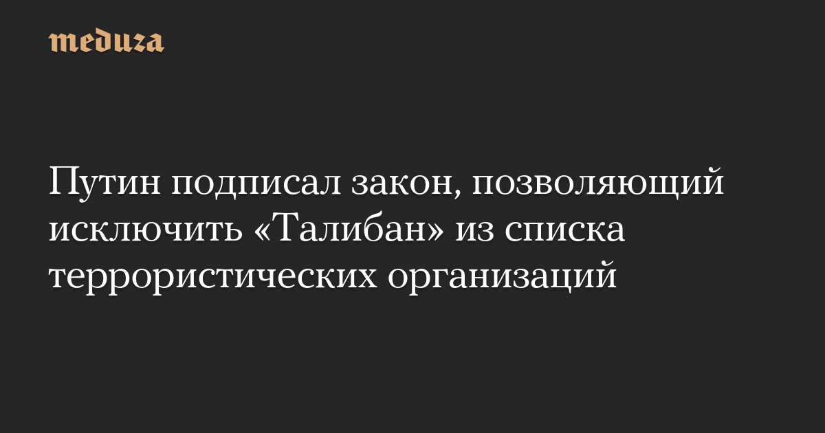 Путин подписал закон, позволяющий исключить «Талибан» из списка террористических организаций