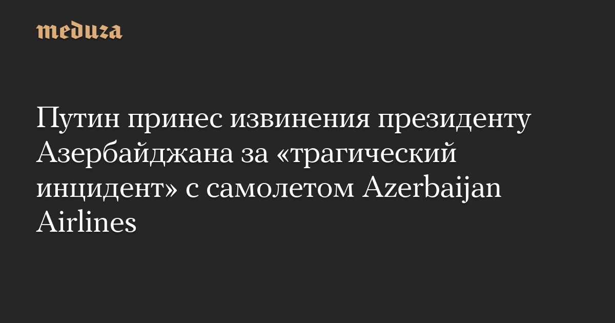 Путин принес извинения президенту Азербайджана за «трагический инцидент» с самолетом Azerbaijan Airlines