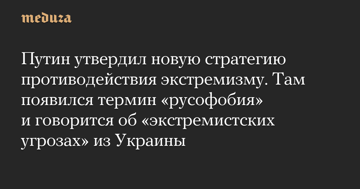Путин утвердил новую стратегию противодействия экстремизму. Там появился термин «русофобия» и говорится об «экстремистских угрозах» из Украины