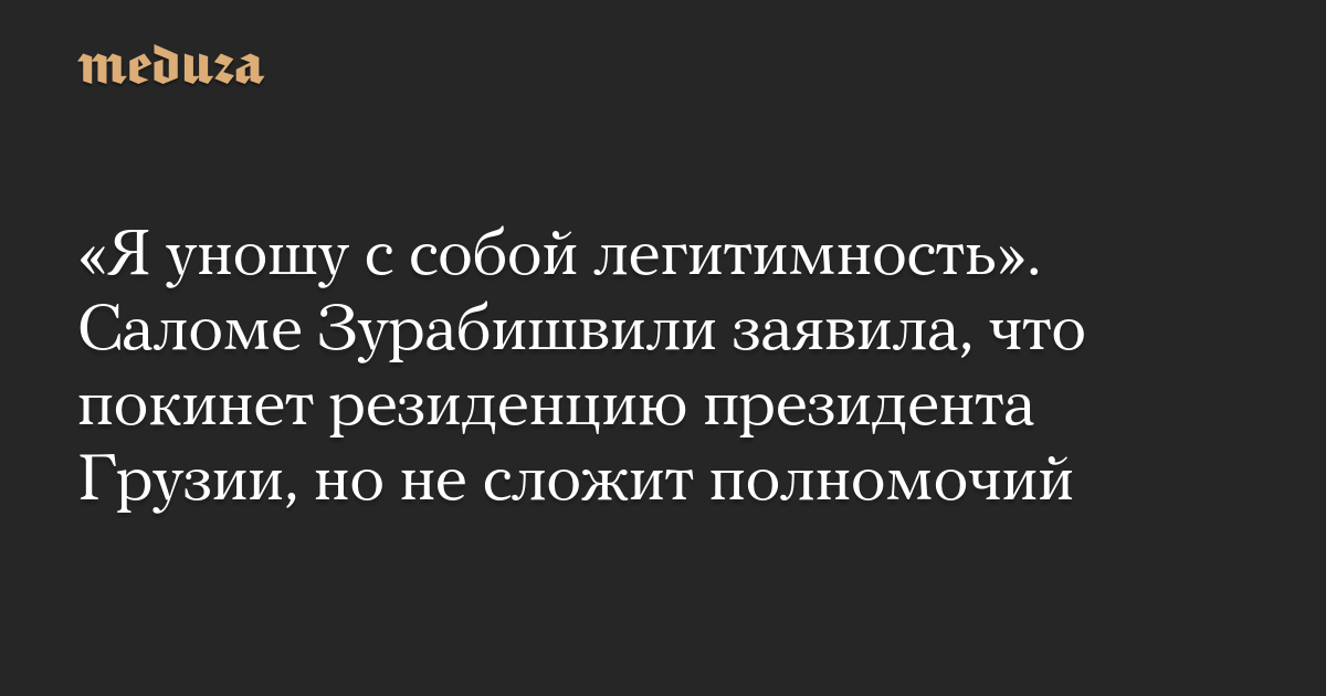 «Я ухожу отсюда и уношу с собой легитимность. Ничего не изменится, буду я в резиденции или нет. Эта президентская резиденция была символом, пока здесь находилась президент, которая была легитимной. Я остаюсь единственным легитимным президентом Грузии», — сказала Зурабишвили.