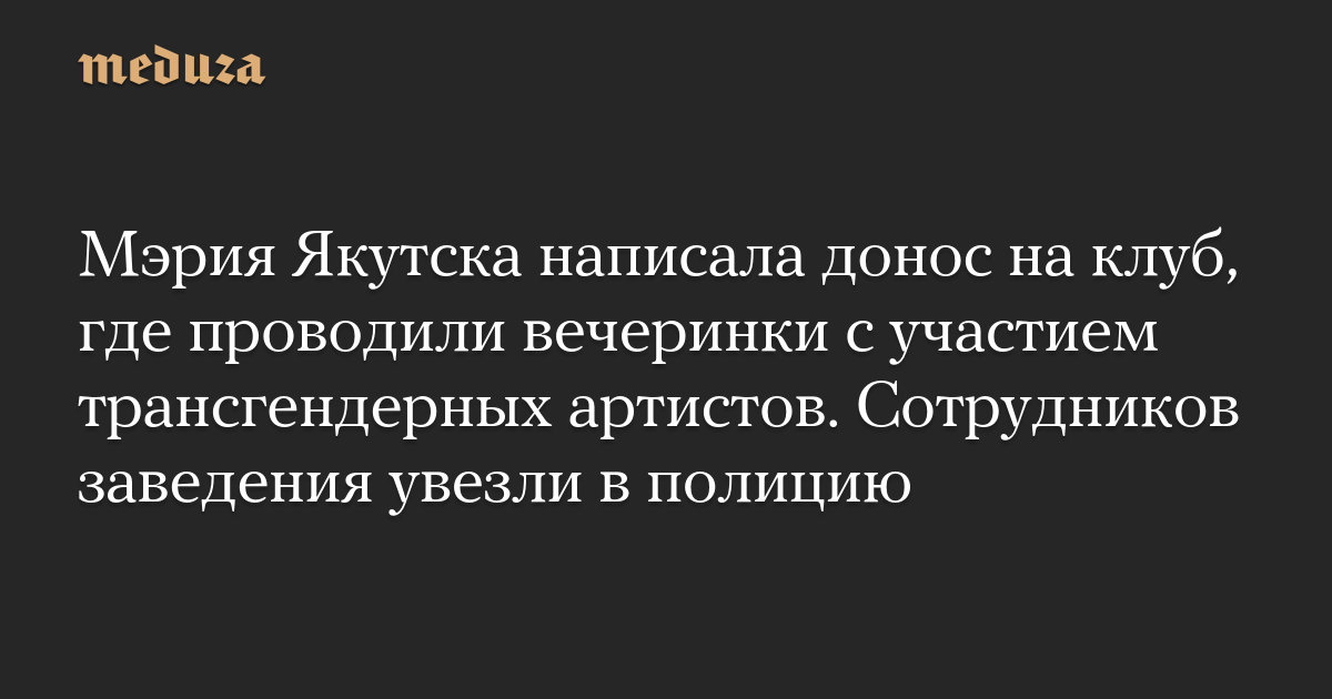 Мэрия Якутска написала донос на клуб, где проводили вечеринки с участием трансгендерных артистов. Сотрудников заведения увезли в полицию