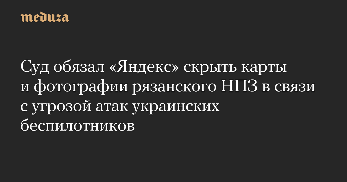 Суд обязал «Яндекс» скрыть карты и фотографии рязанского НПЗ в связи с угрозой атак украинских беспилотников