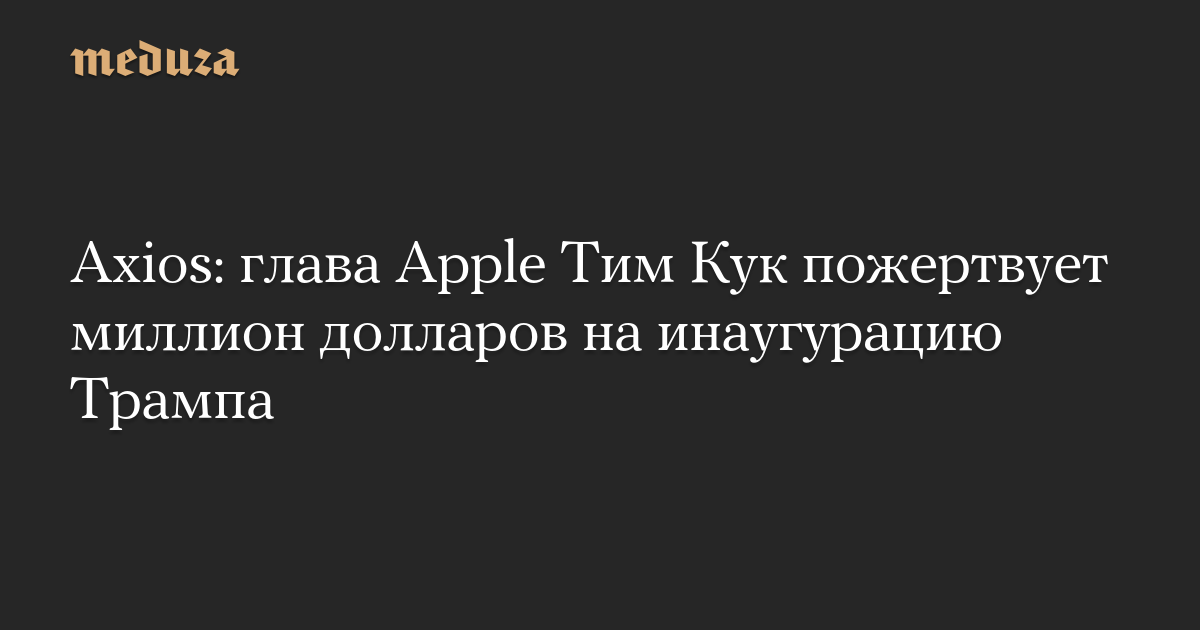 «Кук, гордый уроженец Алабамы, считает инаугурацию великой американской традицией и жертвует на нее в духе единства», — заявили собеседники издания. Axios отмечает, что от Apple пожертвований не ожидается.