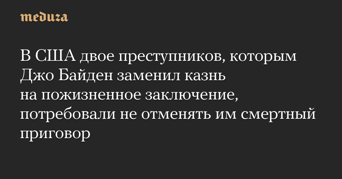 В США двое преступников, которым Джо Байден заменил казнь на пожизненное заключение, потребовали не отменять им смертный приговор