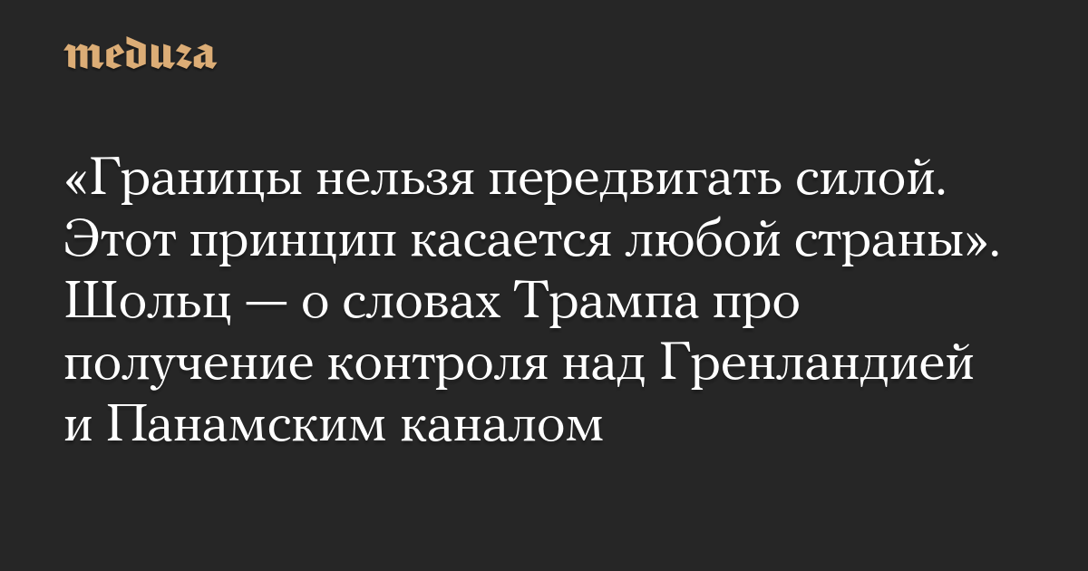 «Границы нельзя передвигать силой. Этот принцип касается любой страны». Шольц — о словах Трампа про получение контроля над Гренландией и Панамским каналом