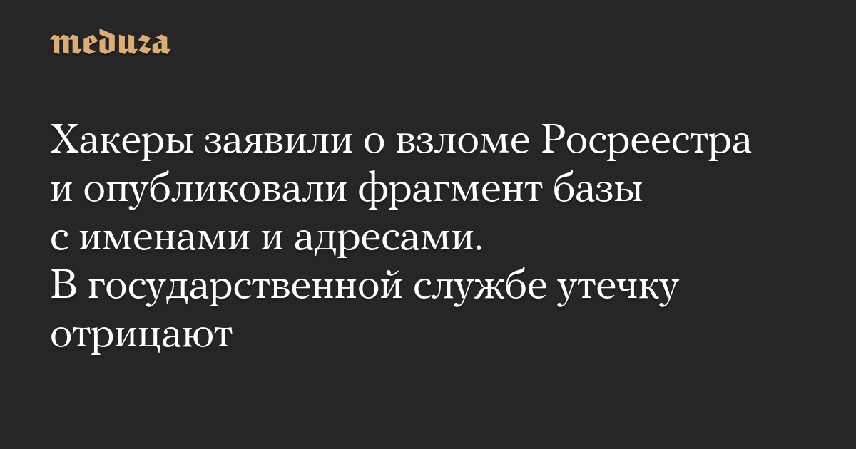 Хакеры заявили о взломе Росреестра и опубликовали фрагмент базы с именами и адресами. В государственной службе утечку отрицают