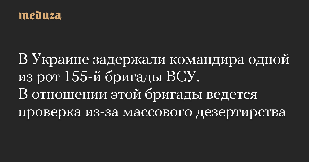 В Украине задержали командира одной из рот 155-й бригады ВСУ. В отношении этой бригады ведется проверка из-за массового дезертирства