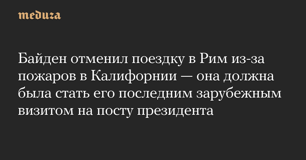 Байден отменил поездку в Рим из-за пожаров в Калифорнии — она должна была стать его последним зарубежным визитом на посту президента