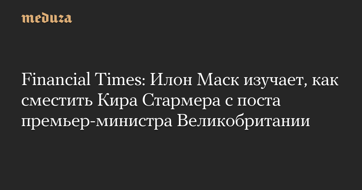 Financial Times: Илон Маск изучает, как сместить Кира Стармера с поста премьер-министра Великобритании