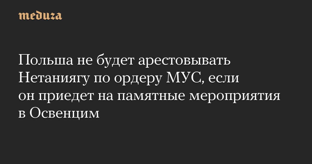 Обновление. Власти Польши не будут арестовывать Биньямина Нетаниягу по ордеру МУС, если он приедет на памятные мероприятия в Освенцим, сообщил премьер-министр Польши Дональд Туск. Кабинет министров Польши принял соответствующую резолюцию. «Я подтверждаю, будь то премьер-министр, президент или министр — как сейчас заявлено — образования Израиля, что кто бы ни приехал в Освенцим, ему будет обеспечена безопасность и он не будет задержан», — сказал Туск.