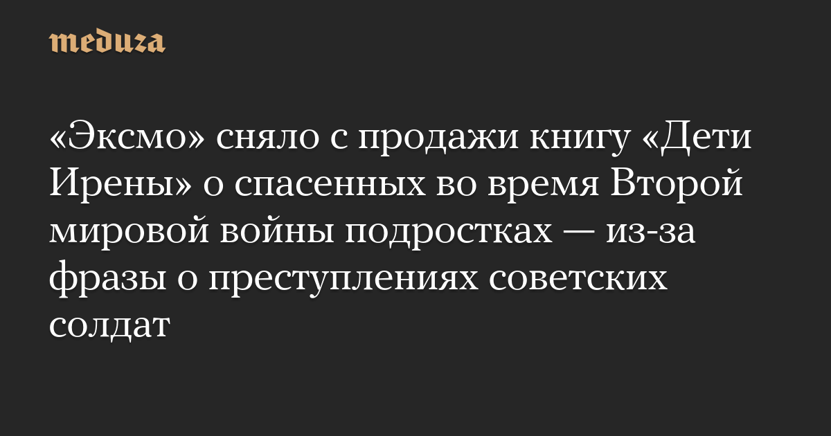 «Эксмо» сняло с продажи книгу «Дети Ирены» о спасенных во время Второй мировой войны подростках — из-за фразы о преступлениях советских солдат