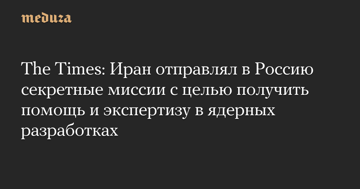 The Times: Иран отправлял в Россию секретные миссии с целью получить помощь и экспертизу в ядерных разработках