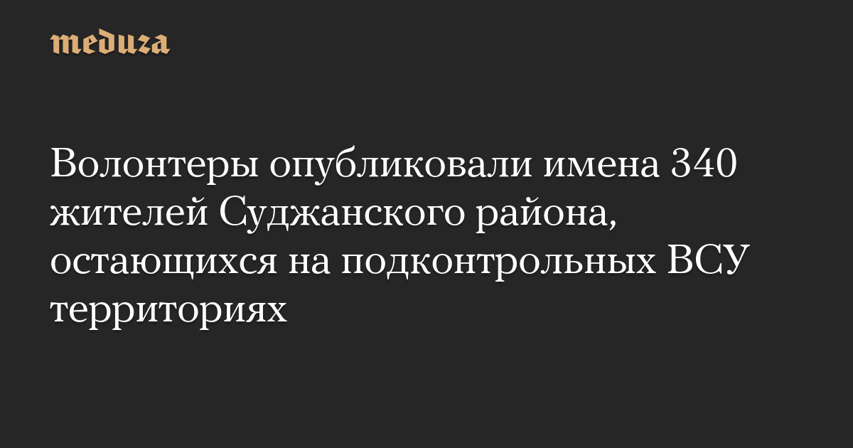 Волонтеры опубликовали список из 340 людей, которые, как утверждается, остаются на территориях, занятых ВСУ в Суджанском районе. На список обратила внимание «Новая газета Европа».