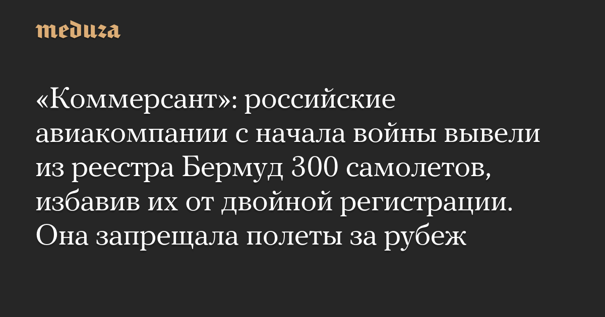 «Коммерсант»: российские авиакомпании с начала войны вывели из реестра Бермуд 300 самолетов, избавив их от двойной регистрации. Она запрещала полеты за рубеж