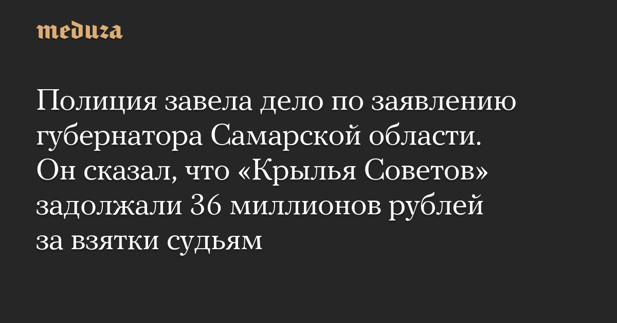 Полиция завела дело по заявлению губернатора Самарской области. Он сказал, что «Крылья Советов» задолжали 36 миллионов рублей за взятки судьям