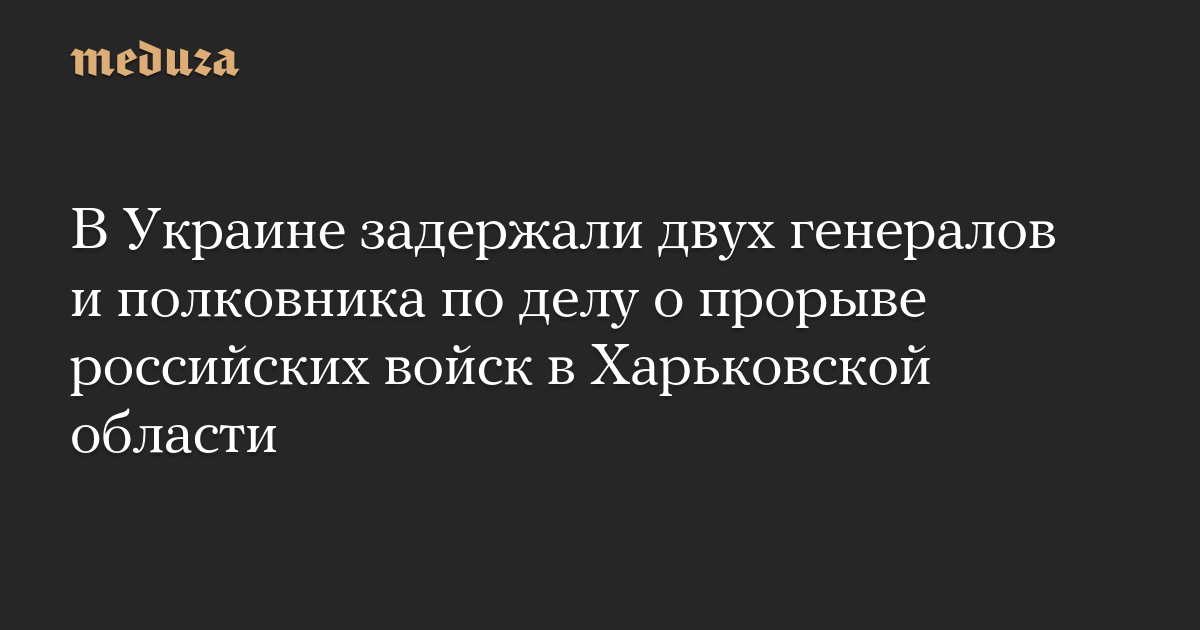В Украине задержали двух генералов и полковника по делу о прорыве российских войск в Харьковской области