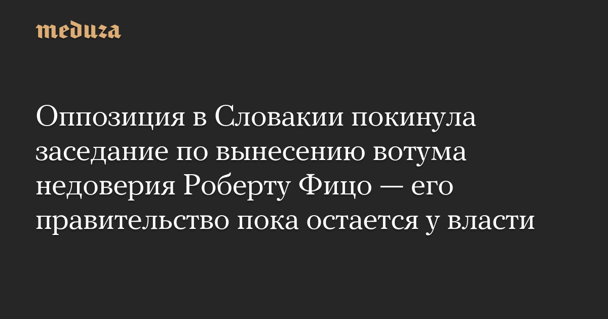 Оппозиция в Словакии покинула заседание по вынесению вотума недоверия Роберту Фицо — его правительство пока остается у власти
