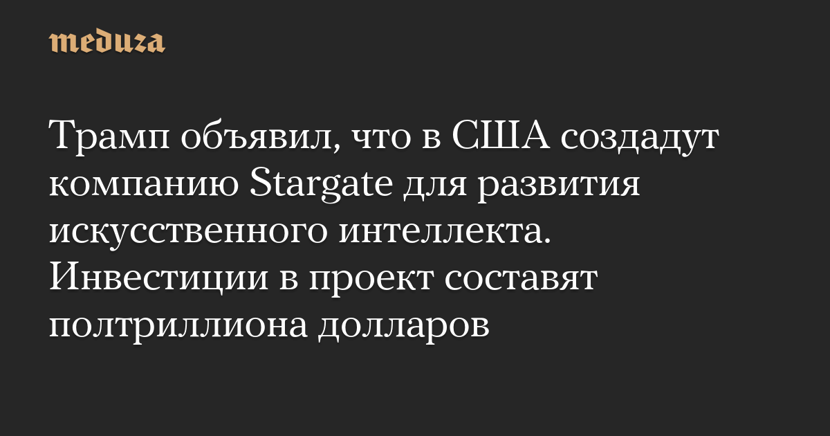 Трамп объявил, что в США создадут компанию Stargate для развития искусственного интеллекта. Инвестиции в проект составят полтриллиона долларов