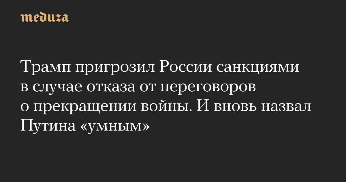 Трамп пригрозил России санкциями в случае отказа от переговоров о прекращении войны. И вновь назвал Путина «умным»