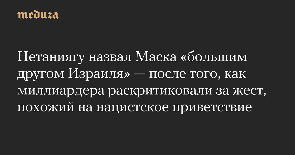 Нетаниягу назвал Маска «большим другом Израиля» — после того, как миллиардера раскритиковали за жест, похожий на нацистское приветствие