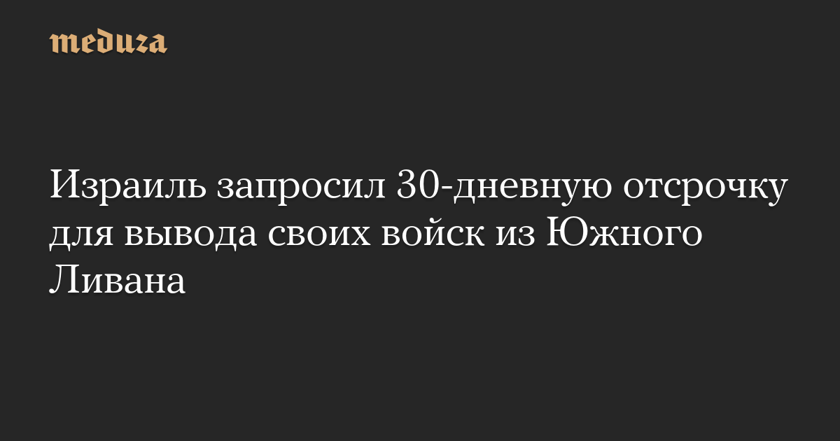 Израиль запросил у США 30 дней отсрочки для вывода своих войск из Южного Ливана, пишет The Times of Israel.