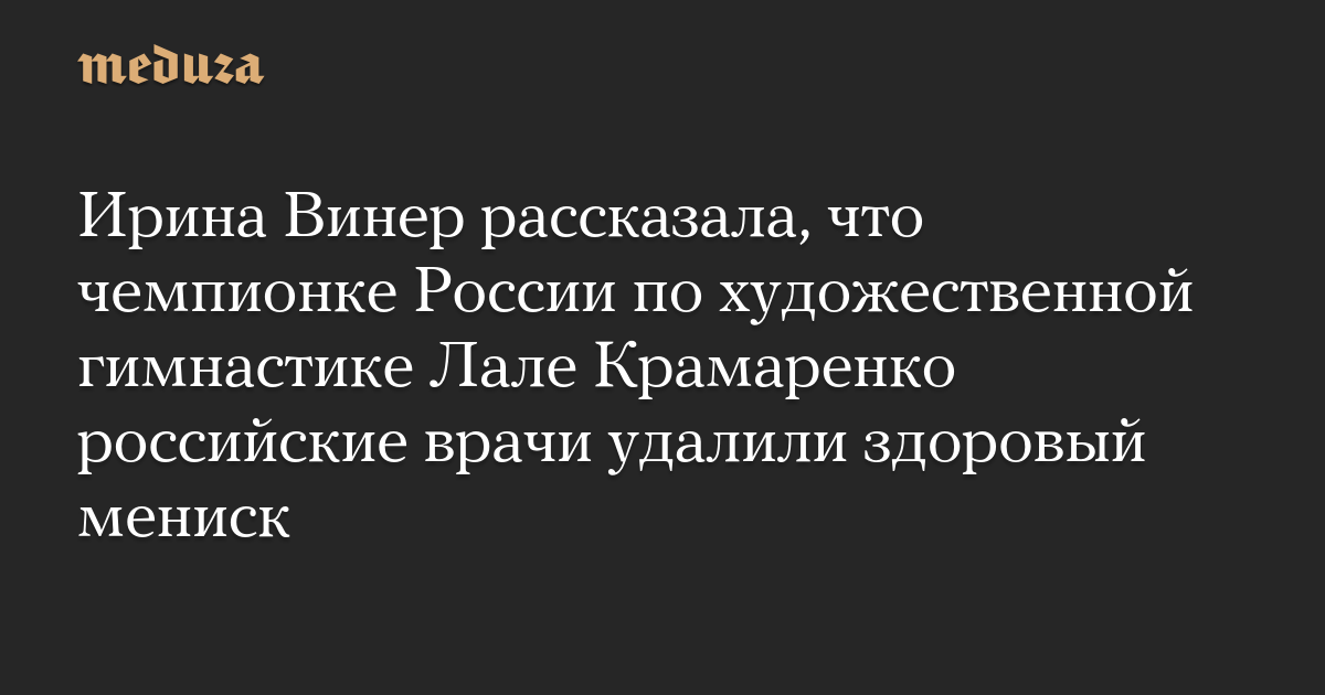 Чемпионке России по художественной гимнастике 2024 года, 20-летней Лале Крамаренко, врачи удалили здоровый мениск вместо поврежденного, рассказала главный тренер сборной Ирина Винер.