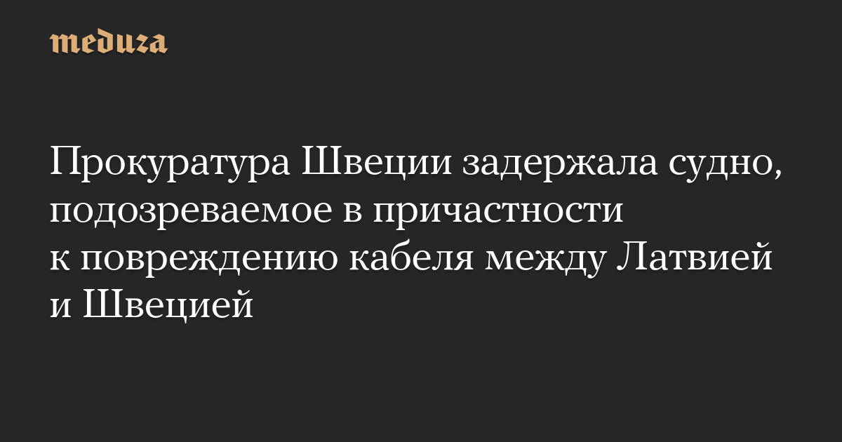 Прокуратура Швеции задержала судно, которое подозревают в причастности к повреждению кабеля между Латвией и Швецией, сообщили в ведомстве.