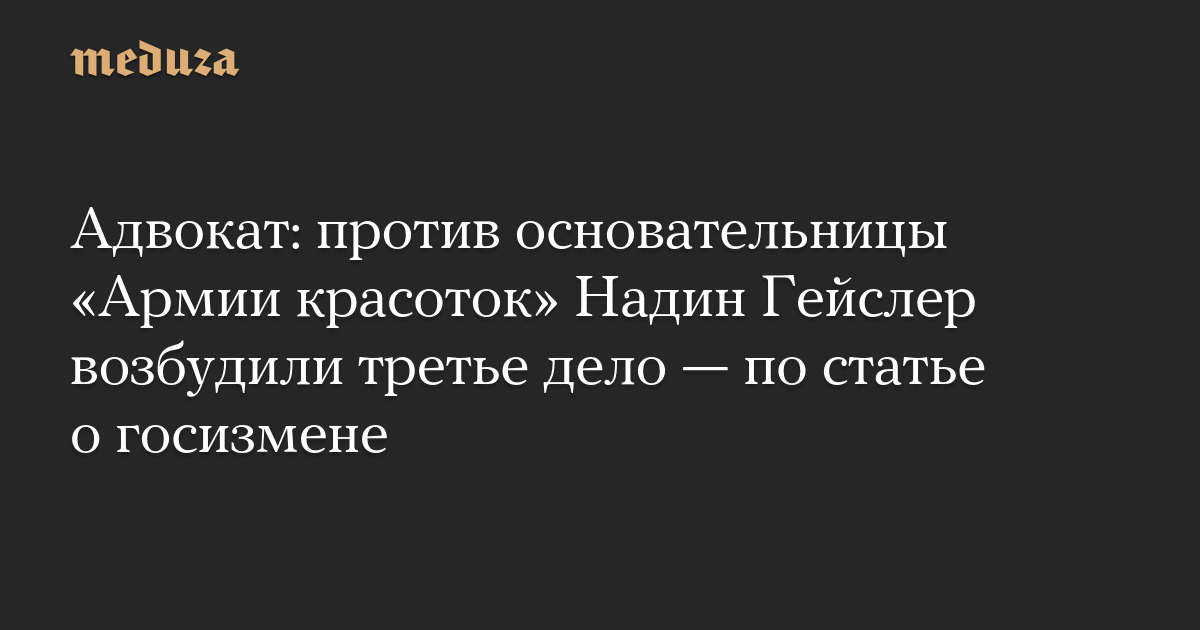 Адвокат: против основательницы «Армии красоток» Надин Гейслер возбудили третье дело — по статье о госизмене