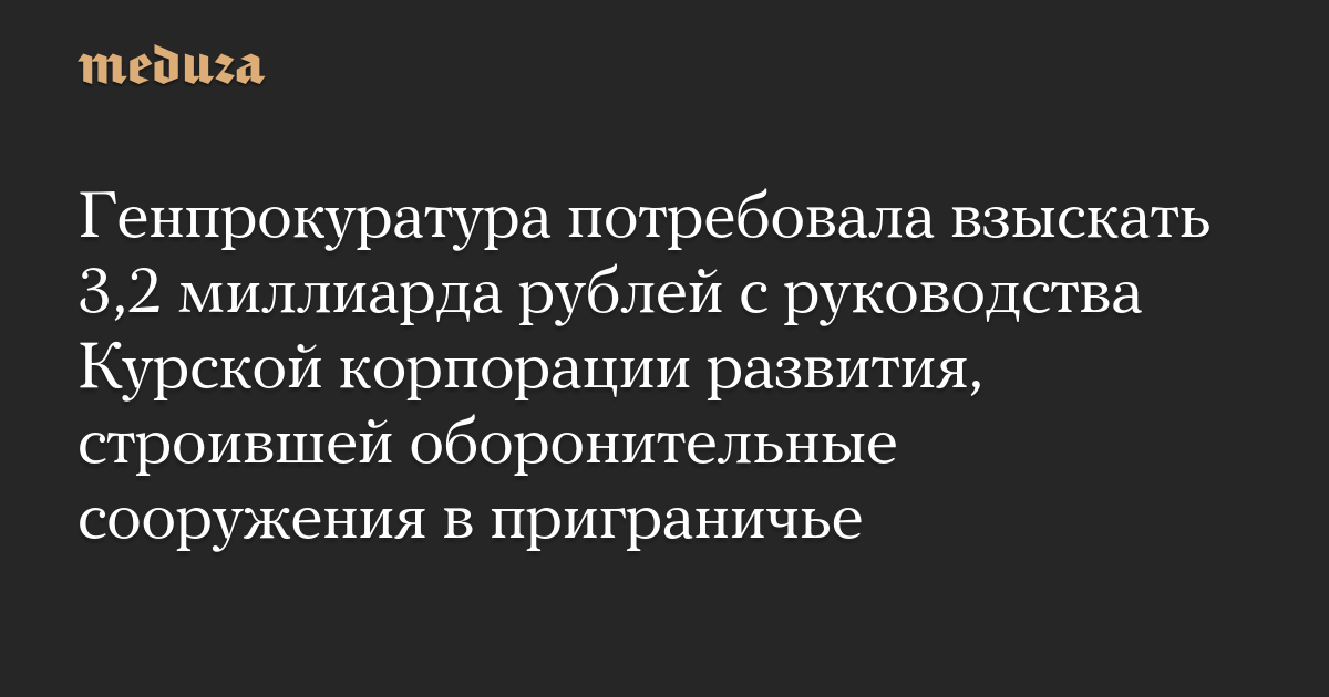 Генпрокуратура потребовала взыскать 3,2 миллиарда рублей с руководства Курской корпорации развития, строившей оборонительные сооружения в приграничье