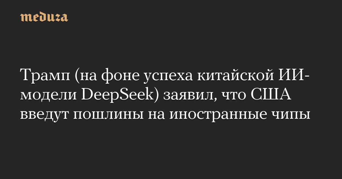 Трамп (на фоне успеха китайской ИИ-модели DeepSeek) заявил, что США введут пошлины на иностранные чипы