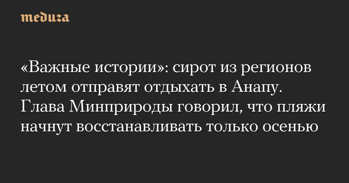 «Важные истории»: сирот из регионов летом отправят отдыхать в Анапу. Глава Минприроды говорил, что пляжи начнут восстанавливать только осенью
