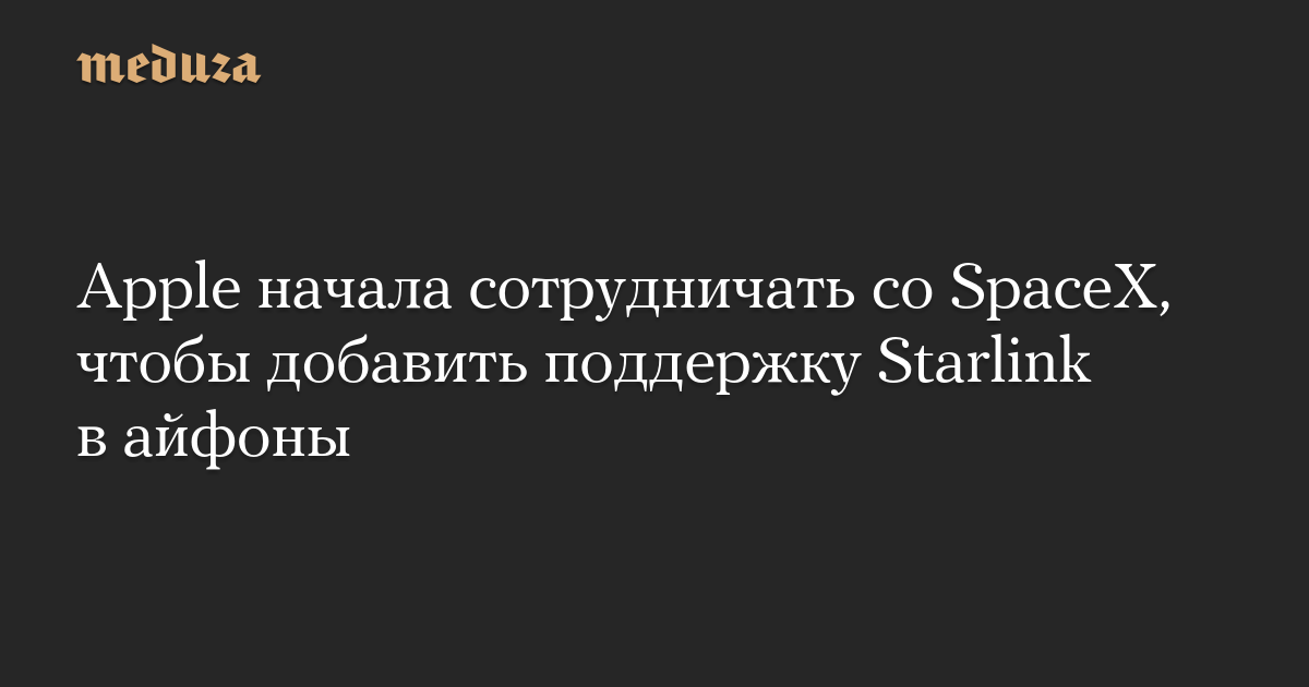 Apple начала сотрудничать со SpaceX, чтобы добавить поддержку Starlink в айфоны
