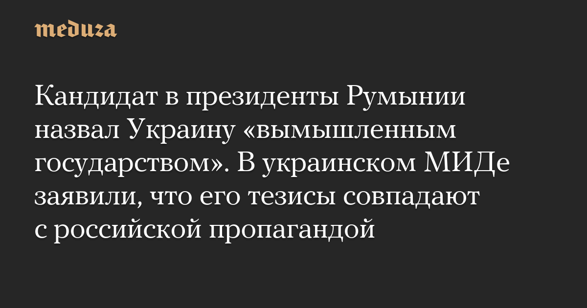 Кандидат в президенты Румынии назвал Украину «вымышленным государством». В украинском МИДе заявили, что его тезисы совпадают с российской пропагандой